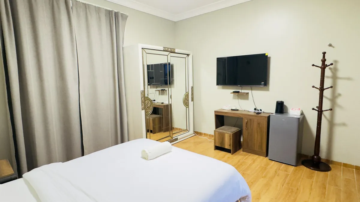 Our VIP Suites are designed for premium guests, featuring spacious interiors, a luxurious bathroom, a walk-in closet, and a large seating area. Ideal for long stays, VIP guests, or those seeking a luxury experience.